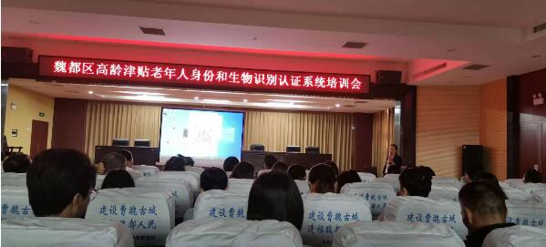 繼平頂山市新華區、湛河區后,平頂山市衛東區、寶豐縣、郟縣等多個區縣相繼舉辦高齡老人生物識別認證培訓會。 1、寶豐縣培訓現場: 2、郟縣培訓現場: 3、平頂山市衛東區培訓現場: 根據《河南省民政廳 河南省財政廳關于實施高齡津貼制度的通知》(豫民文〔2019〕109號)的要求,自2019年1月1日起,全省各縣(市、區)分別對年滿80周歲、90周歲、100周歲的老人,發放相應標準的高齡津貼。要求建立高齡老人個人檔案和基礎數據庫,“可使用政府購買養老服務等資金委托第三方定期開展老年人身份和生物識別認證服務”。 精準核對數據,是切實做到高齡津